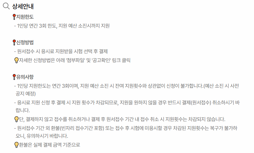- 시험 접수 후 바로 스크린샷 저장 필수 (영수증 증빙용)