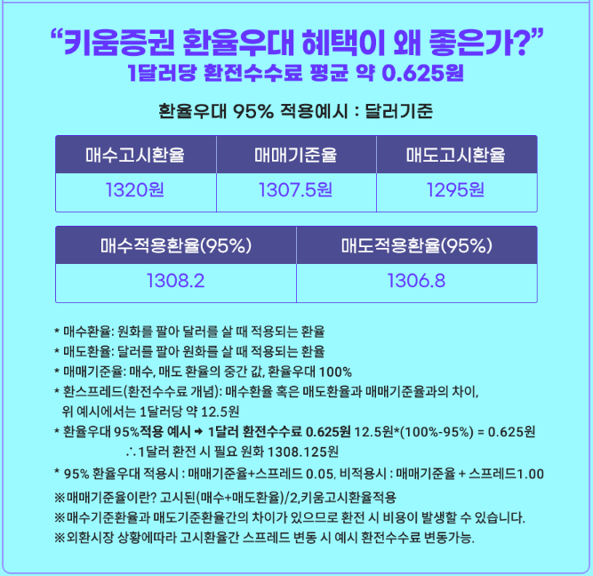 환율우대를 95%나 해주기 떄문에 환전시 수수료의 부담을 줄이고 투자를 할수 있는 장점이 있습니다