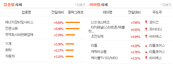 어제와 동일하게 에너지 장비 서비스업에서 오늘도 많은 인기를 모았습니다