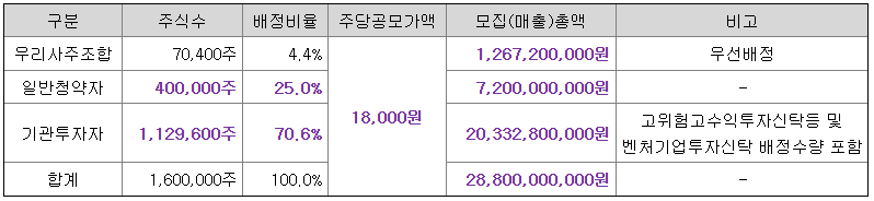 주당공모가액 및 모집(매출)총액은 확정공모가액인 18,000원 기준입니다.