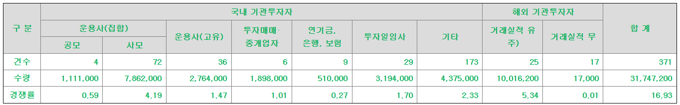 ① 기관투자자 청약일 : 2025년 2월 4일 ~ 2월 5일(2일간)